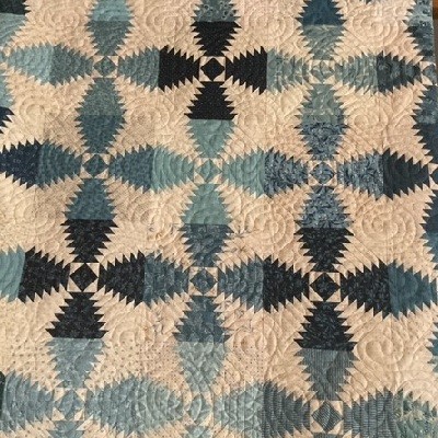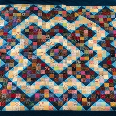 Split nine-patch blocks create hills and valleys in this regional quilt design.