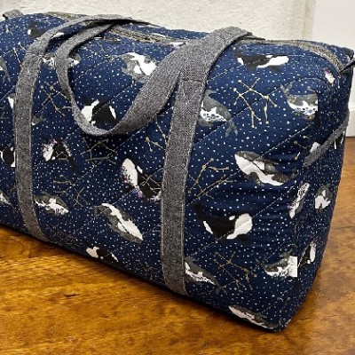 Use your stash or a favorite fabrics to make this large roomy patchwork quilted duffle bag; perfect for a weekend away.