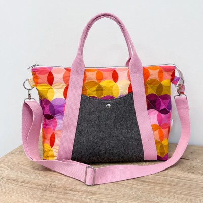 The Oxbow Tote is Noodlehead’s newest bag pattern in two sizes that can be beautifully customized with quilting. This bag features a zippered top, large handles, a crossbody strap and a curved front pocket.