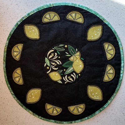 Learn how to properly place designs around a center design as you create a table topper embellished with lemons to use when the weather gets warm and we’re ready for lemonade.