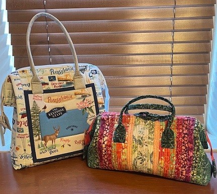 Aunties Two uses similar techniques to create two different shaped bags. Each uses a frame providing structure to the bag. Choose the style you want to make. Only one bag will be made in class.