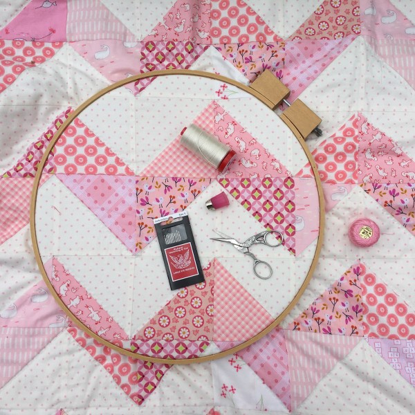 This method allows you to quickly hand quilt your quilt tops and other projects, adding that special hand-stitched touch. You'll use a larger needle and a heavier thread or perle cotton to achieve beautiful stitches.