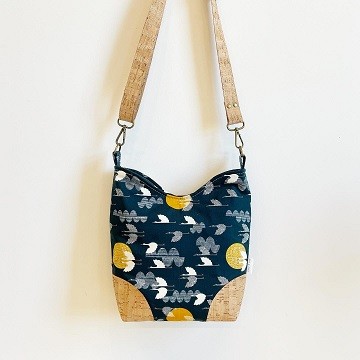 This beginner-friendly bagmaking pattern is a great way to make a lovely handbag with cork accents and a cork strap. The pattern can be made in a large or a small size. When making this bag you will learn about different types of interfacing used in bag making, how to install a magnetic snap, how to use zippers by the yard, and how to sew with cork.