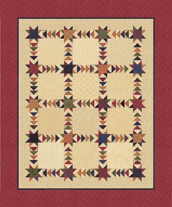 Lynne Hagmeier's brand new Kansas Troubles fabric collection is the inspiration for her Chasing Stars lap quilt (61" x 73").