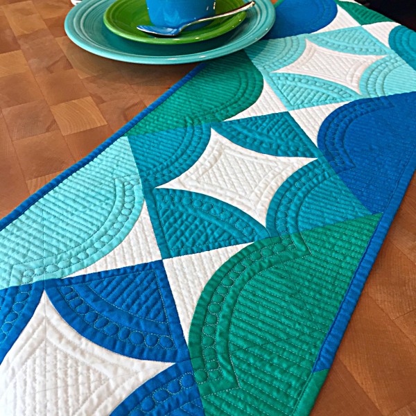 Once you've tried the different techniques for sewing curves, you can pick your favorite and we'll stitch up at least one of the four-patch blocks for this unique and interesting table runner in no time!