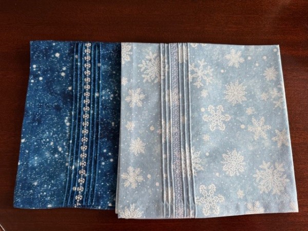 In this class, we will work on two napkins. One will have a 1/2 inch hem with mitered corners, and the other, pin tucks with decorative stitching. You can make both from one fabric, or choose 2 different fabrics and make 2 napkins from each one.