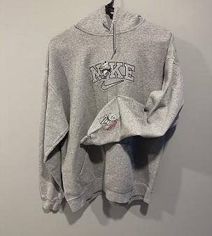 on the front and a custom design on the sleeve. The goal is for them to leave with the confidence and skills needed to continue crafting personalized, embroidered sweatshirts of their own.