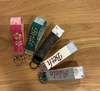 In this 6-hour beginner’s class on embroidered key fobs, students will learn how to upload up to four to five fonts/designs onto their domestic embroidery machines and embroider them onto their hoops in a single hooping. The primary objective is to equip both beginners and advanced students with crucial embroidery skills, encompassing tasks such as transferring letters from the machine’s font library, working with design density, resizing, relocating designs to preferred areas, and reformatting designs to suit individual preferences within the embroidery section. While the instructor will provide guidance and examples, students will have the freedom to design their own key fobs, allowing for creative expression. The class will also cover important concepts like working with stabilizers and proper hooping techniques. Students can personalize their key fobs by adding initials, patterns, or colors, ensuring that each creation is unique and reflective of their interests. By the end of the lesson participants will have the practical skills to craft personalized and professionally embroidered key fobs.