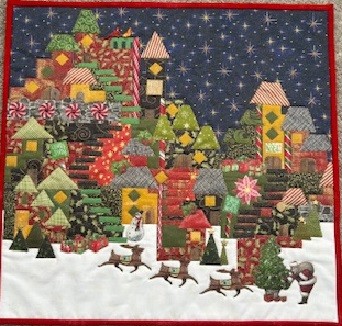 This happy village is a variation on the villages created by Karen Eckmeier in her book, Happy Villages. The technique is the same as Karen uses, but each village is unique to their creator. Using Christmas themed fabrics and embellishments and finally tulle, the village comes to life. In class, you will learn how to “construct” your village with sky and foreground. Then you will be able to embellish your village with other fabric fussy cuts, buttons, decorations, etc. Finishing this mini quilt will require a piece of tulle to overlay the quilt and your sewing machine(at home). You will not be able to make just one!