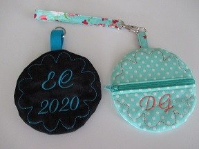 In January you will make a small round pouch in your embroidery hoop. Since we will be using a USB stick this year for all class information, it will be an ideal place to store your USB. You will personalize it using your machine. Attach a ribbon with a ring or a strap with a clasp to clip to your machine bag so you don't forget to bring it to class each month.