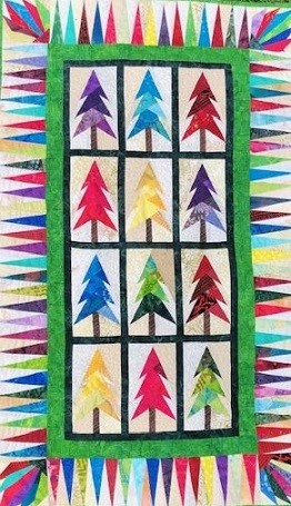 “Jeweled Forest” is a project that uses the foundation paper piecing (FPP) technique to create a beautiful wall hanging that you’ll be proud to hang in your home or give as a gift. FPP ensures that you accurately capture all those many points. You will be amazed at how fast this goes together and how much fun it is to pick out the colors for your creation. Your finished piece measures 22 ½” x 35 ½.”