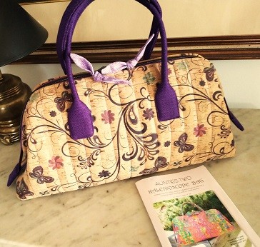 The Kaleidoscope bag is great for carrying small projects or overnight travel essentials. If you prefer a larger purse for every day, this is eye-catching! The six inside pockets will neatly stow a phone, keys and cards. The structural stays stabilize the bag when the zipper is open. Close the zipper and a boxed top is neatly comes together.