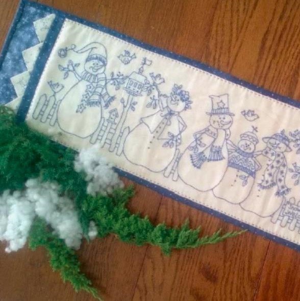Learn about multi hooping and pinpoint placement as you embroider a row of snowmen standing out on the lawn among trees, birds and birdhouses. Then turn your embroidery into a table runner or a bench pillow you can enjoy all season.