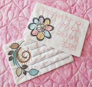 Learn an easy way to create quilt labels in the hoop. The design options are almost endless. You can embellish with most any design, leave it blank to hand write, stitch lines to write, or embroider the words. All these choices and the raw edges are enclosed. Time to get labels on your quilts!