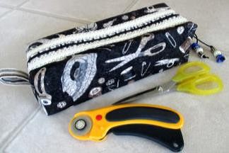In the month of November we will make a quilted zipper case to carry your rotary cutters, scissors and other sewing tools. Quilting will be done in the hoop.