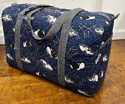 The Patchwork Duffle from Knot & Thread is a wonderful way to incorporate some of your favorite fabrics into a beautiful large patchwork duffle bag. The bag is quite large as it measures 12” H x 20.5” W x 9” D, which is a perfectly roomy bag to take on a weekend getaway. There are easy access slip pockets on the outside. In this advanced beginner class, you will learn how to install a double head zipper, create your own bias tape, and sew a bag with curved corners.