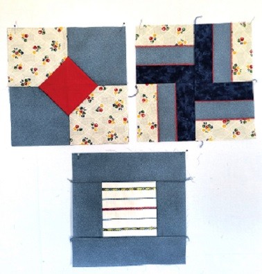 In class we will make 3 different quilt blocks: dimensional bow tie block, rail fence and a decorative stitch block. Each block measures 11 ½ x 11 ½. One block we will finish for a table mat, layering the front, batting, and back, and then we will bind the quilt block with your serger!