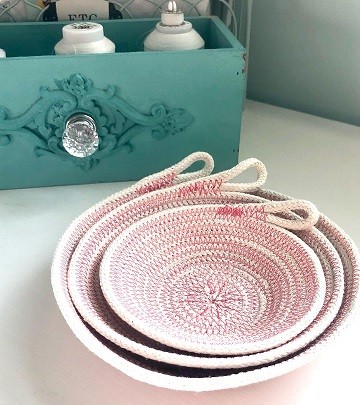 Learn how to stitch a set of three rope bowls with ordinary cotton clothesline rope using the zig zag stitch on your sewing machine. You’ll learn the basics of rope bowl making, and then you can make any size or shape you wish!