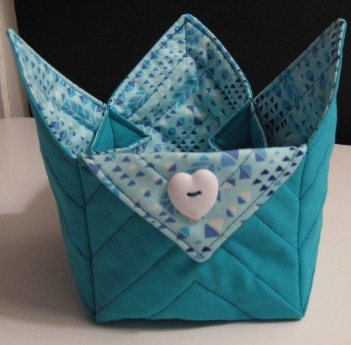 Sew a fun fabric box to hold your treasures! Choose two fabrics, one for the inside and one for the outside. A cute button will finish your project.