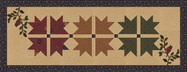 Join Lynne Hagmeier of Kansas Troubles fame to stitch this lovely table runner. The runner (21" x 54") features three simplified blocks constructed with Lynne's own clever technique combined with her exclusive Kansas Troubles Songbird Kut-ups (precut fusible appliques).