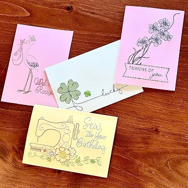 This class is about transforming a stitched design into a refined keepsake. Whether the card is for a birthday, holiday, or special occasion, you’ll leave with finished cards and the confidence to create more on your own—cards that open beautifully, feel substantial in the hand, and reflect the care that went into every stitch.