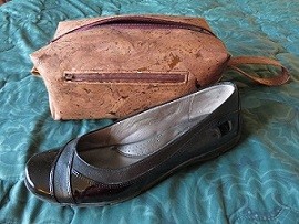 One project, two uses! The finished product can serve as a travel toiletry kit or a classy shoe tote. Pre-treat the inside fabric surface of the cork with Scotch Guard to make it totally water-resistant. The outside cork is naturally that way.