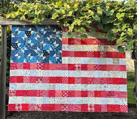 Celebrate your love of the USA with this scrappy patriotic salute to the American Flag! This patchwork version of the stars and stripes is a great scrap buster, allowing you to dig into your red, white, and blue fabric stash.