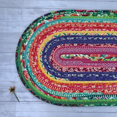 Make a rug reminiscent of an old-fashioned braided rug with a Jelly Roll.