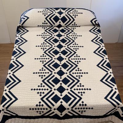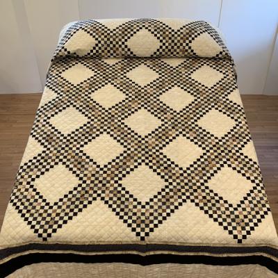 This unusual hand-appliqued design is a fresh take on understated modern quilting.