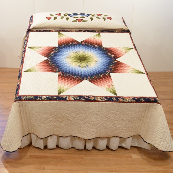Our Lone Star quilts feature a bonus! Notice the special hand-applique on the pillow portion of the quilt. This design was created by the Amish quilt maker, and it is a perennial favorite.