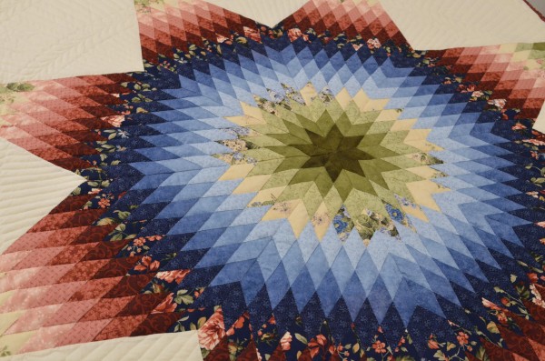 The Lone Star is a classic pattern that appeals to many buyers! It requires careful piecing for the diamonds to align perfectly and the center of the quilt to lay flat.