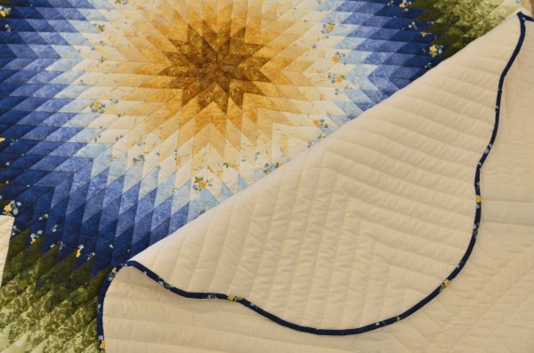 The Lone Star is a classic pattern that appeals to many buyers! It requires careful piecing for the diamonds to align perfectly and the center of the quilt to lay flat.