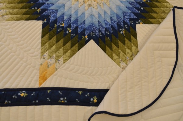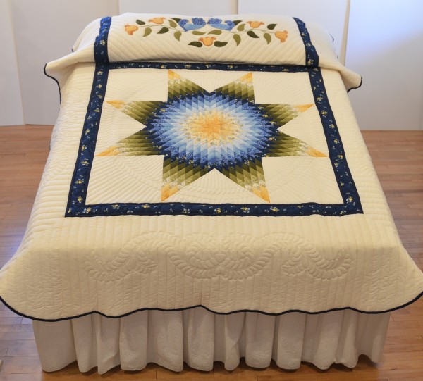 The Lone Star is a classic pattern that appeals to many buyers! It requires careful piecing for the diamonds to align perfectly and the center of the quilt to lay flat.