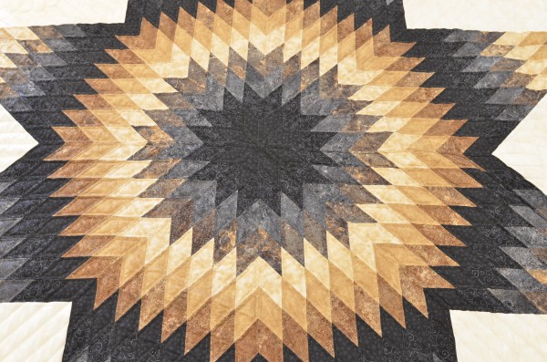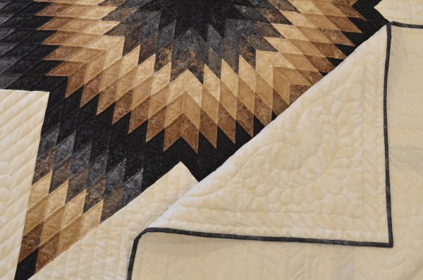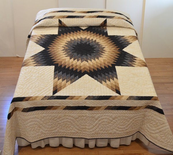 The Lone Star is a classic pattern that appeals to many buyers! It requires careful piecing for the diamonds to align perfectly and the center of the quilt to lay flat.