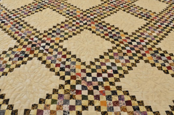 A combination of two beloved patterns, thousands of small postage stamp-sized pieces all work together in this Irish Chain design known for its simplicity and airy quality! The quilt-maker's artful placement of color creates a visually pleasing design.