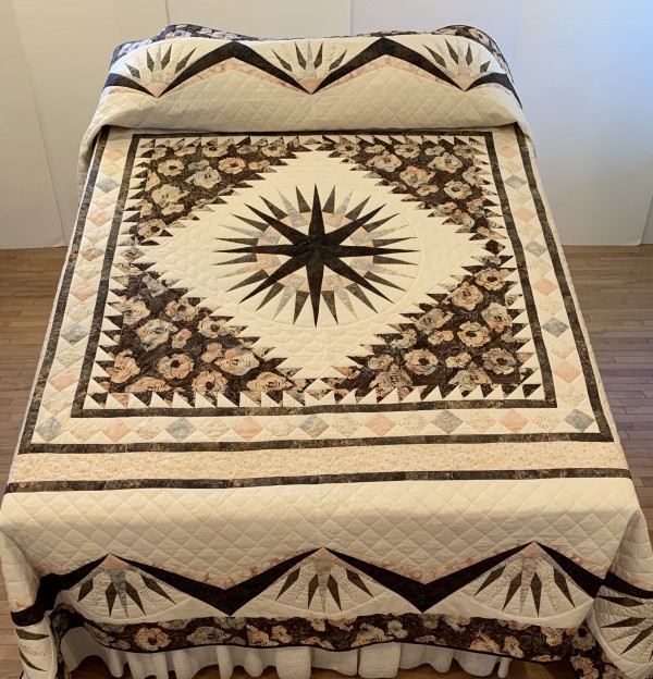 The bed skirt portion features Compass points and is a stunning accent to the overall design. The workmanship required to make this quilt is not for a beginner!