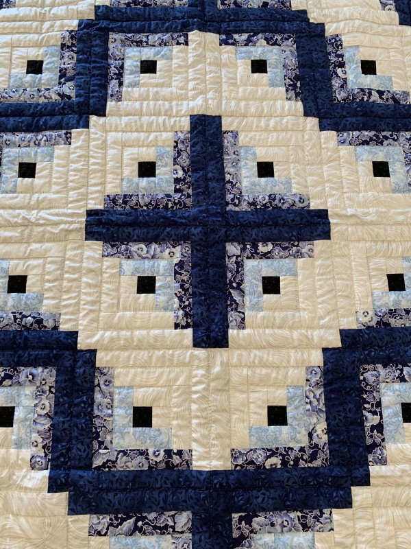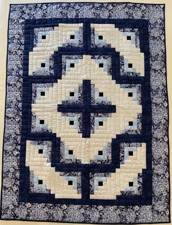 Traditionally, the center of the “cabin” features a red block for the fire or hearth, the gathering place of any home. Each "log" is accented with hand-quilting giving the quilt added loft and beauty.