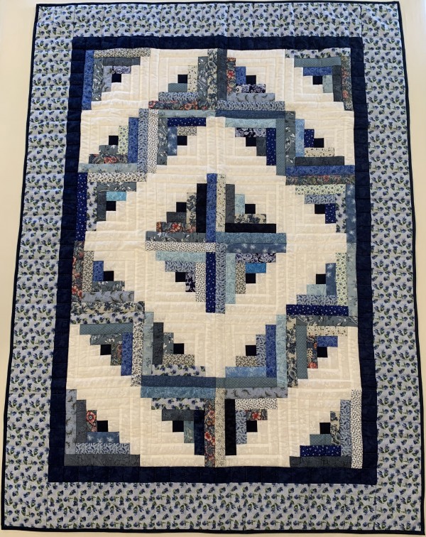 Traditionally, the center of the “cabin” features a red block for the fire or hearth, the gathering place of any home. Each "log" is accented with hand-quilting giving the quilt added loft and beauty.