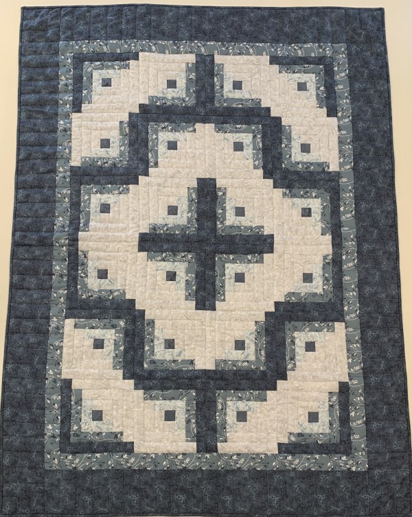 Traditionally, the center of the “cabin” features a red block for the fire or hearth, the gathering place of any home. Each "log" is accented with hand-quilting giving the quilt added loft and beauty.