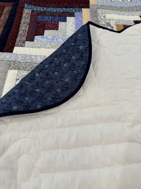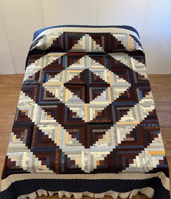 Traditionally, the center of the “cabin” features a red block for the fire or hearth, the gathering place of any home. Each "log" is accented with hand-quilting giving the quilt added loft and beauty.