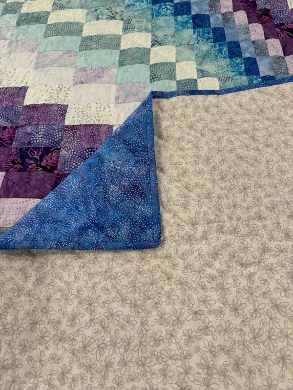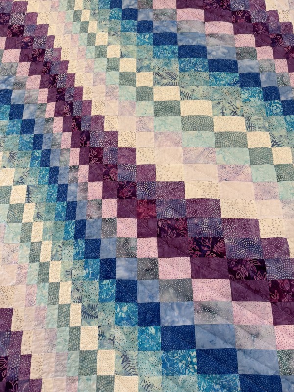 The more than 2,000 blocks are hand-quilted across the diagonal, enhancing the movement of the piece.