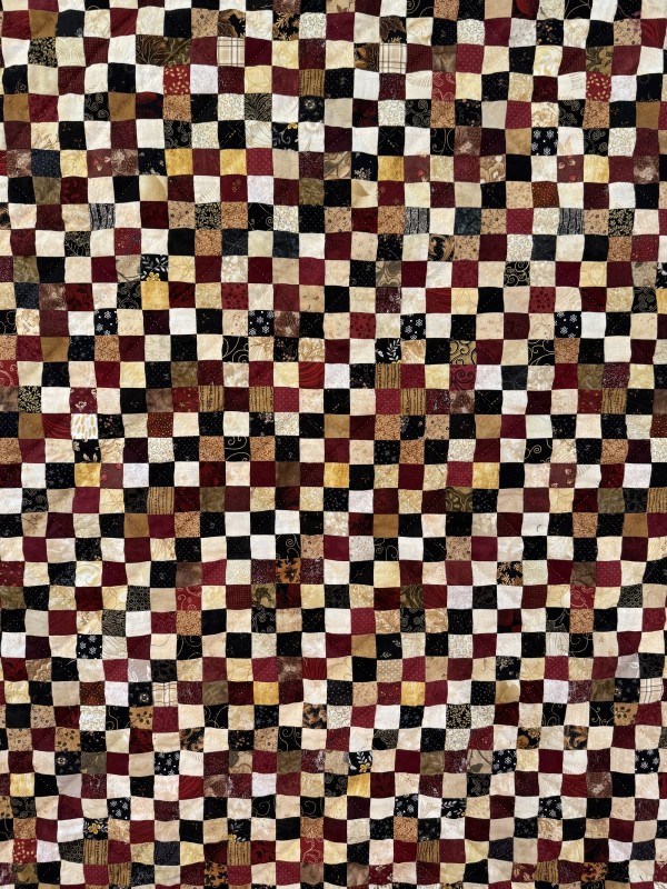 Thousands of small postage stamp-sized pieces all work together in this stunning quilt! The quilt-maker's artful placement of color creates a visually pleasing design.