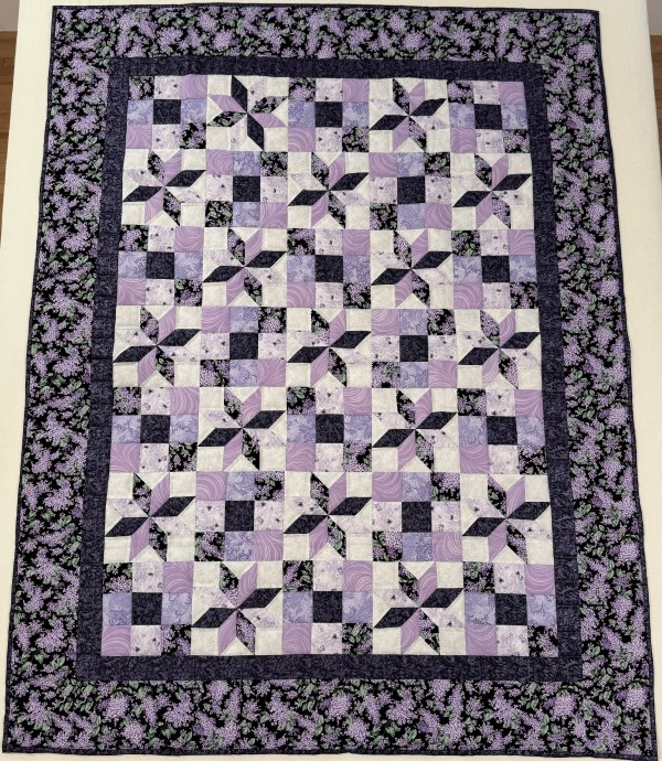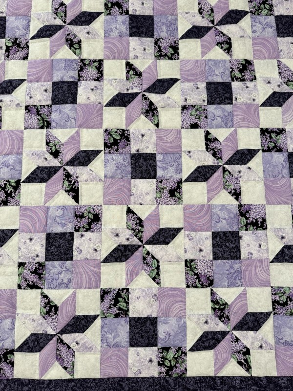 Admire the straightforward pattern and this quilter’s excellent choices in color value and placement. The Nine Patch Star features star blocks as a variation of the Nine Patch.