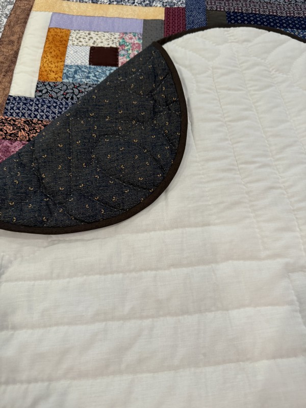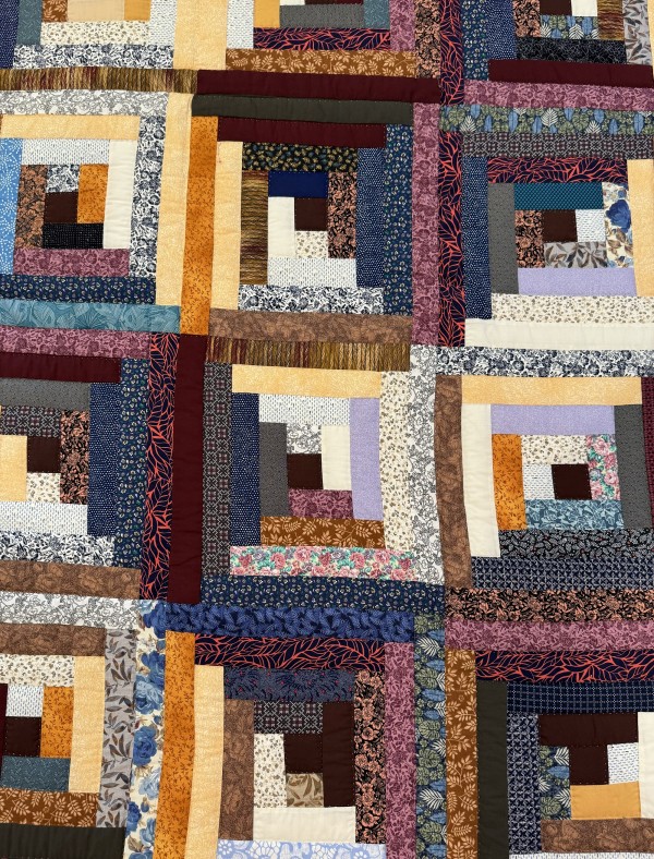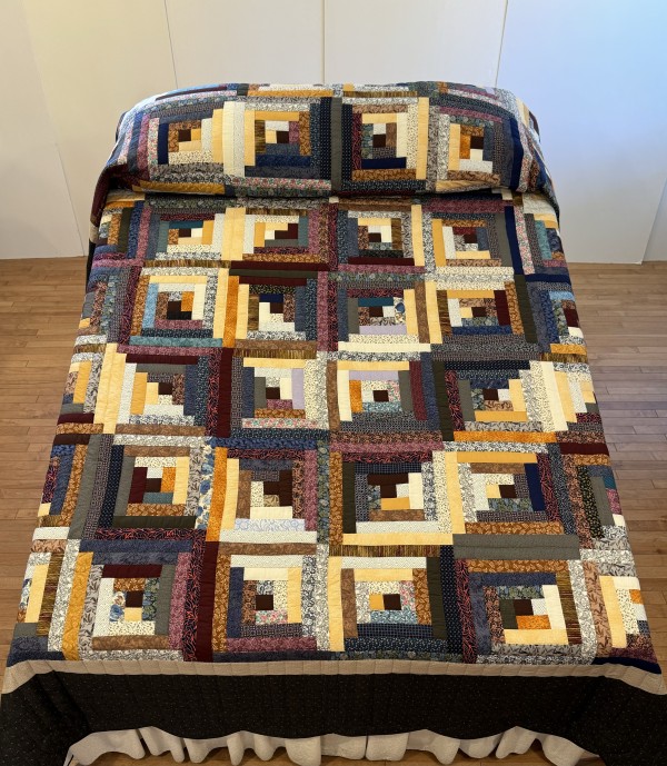 Traditionally, the center of the “cabin” features a red block for the fire or hearth, the gathering place of any home. Each "log" is accented with hand-quilting giving the quilt added loft and beauty.
