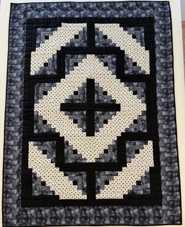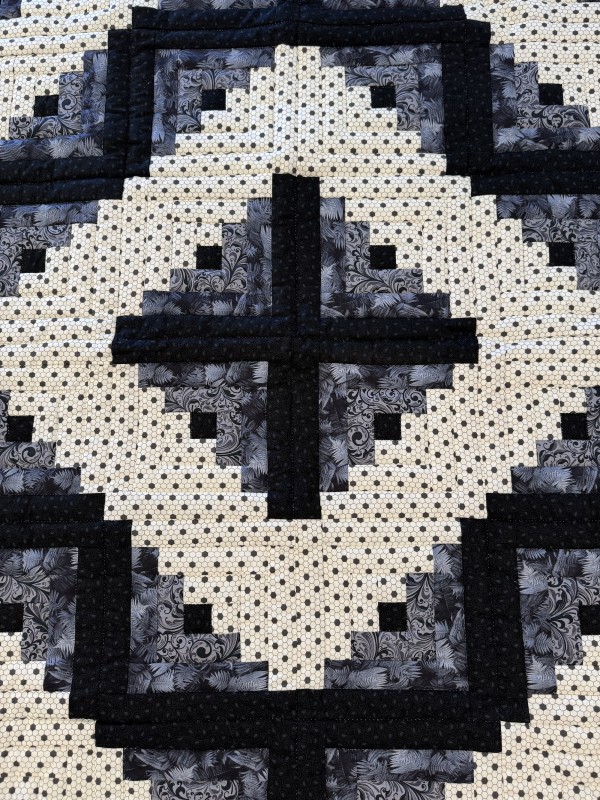 Traditionally, the center of the “cabin” features a red block for the fire or hearth, the gathering place of any home. Each "log" is accented with hand-quilting giving the quilt added loft and beauty.