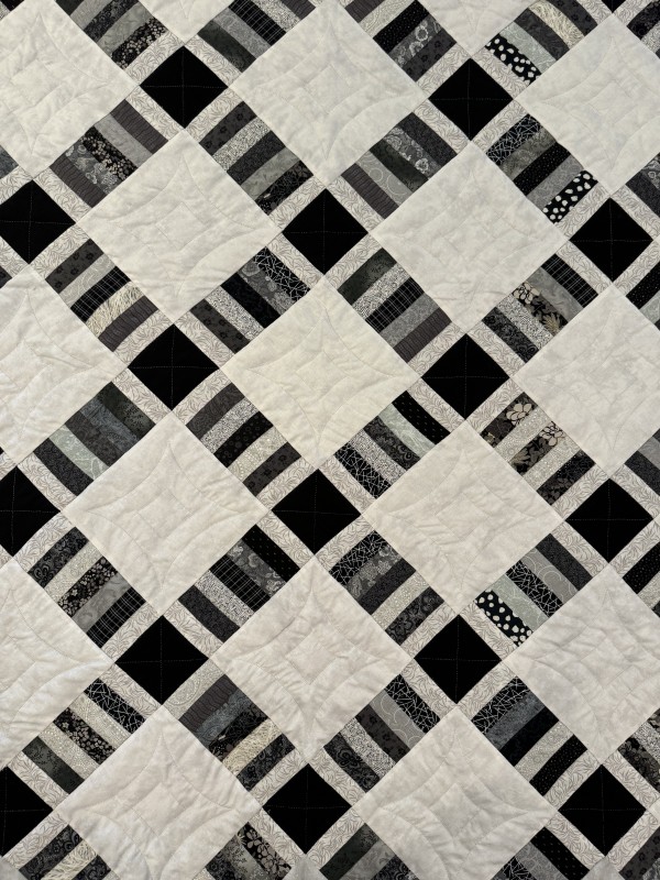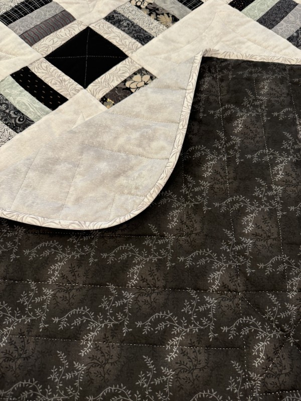 Precise piecing and expert color placement give this quilt a crisp, balanced design. Hand-quilted by an Amish friend.