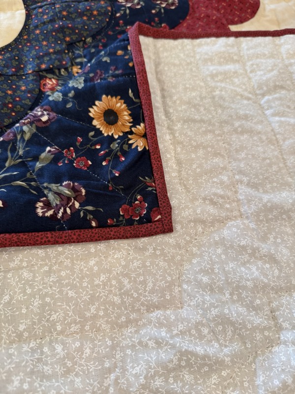 A beloved pattern that goes back to the early days of quilting, the Ocean Wave design is just as popular today as ever. One can easily imagine softly curving waves or lapping water, created from simple two-piece blocks. Let this classic find a place in your home! Hand-quilted by an Amish friend, Lancaster County, PA.