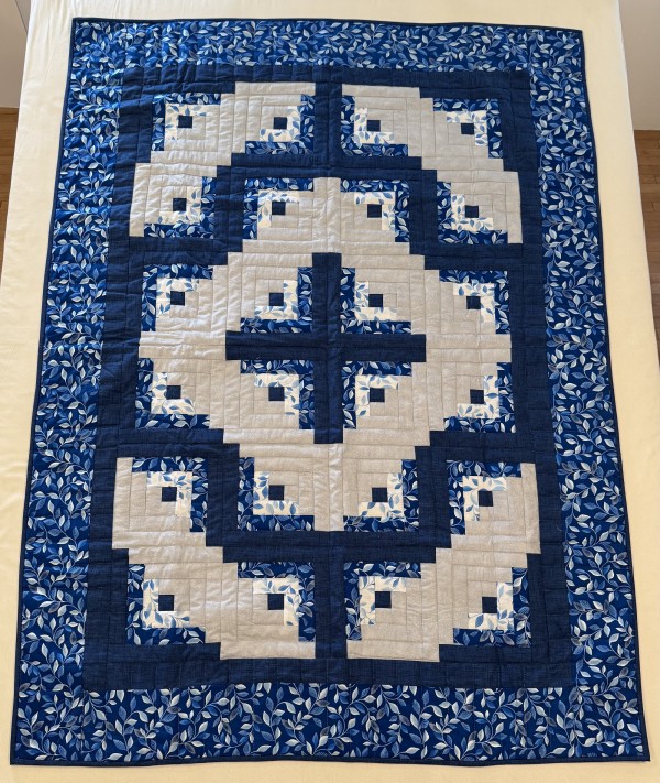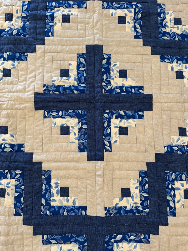 Traditionally, the center of the “cabin” features a red block for the fire or hearth, the gathering place of any home. Each "log" is accented with hand-quilting giving the quilt added loft and beauty.