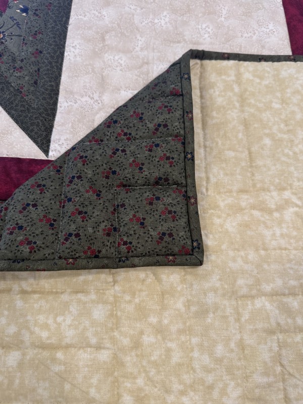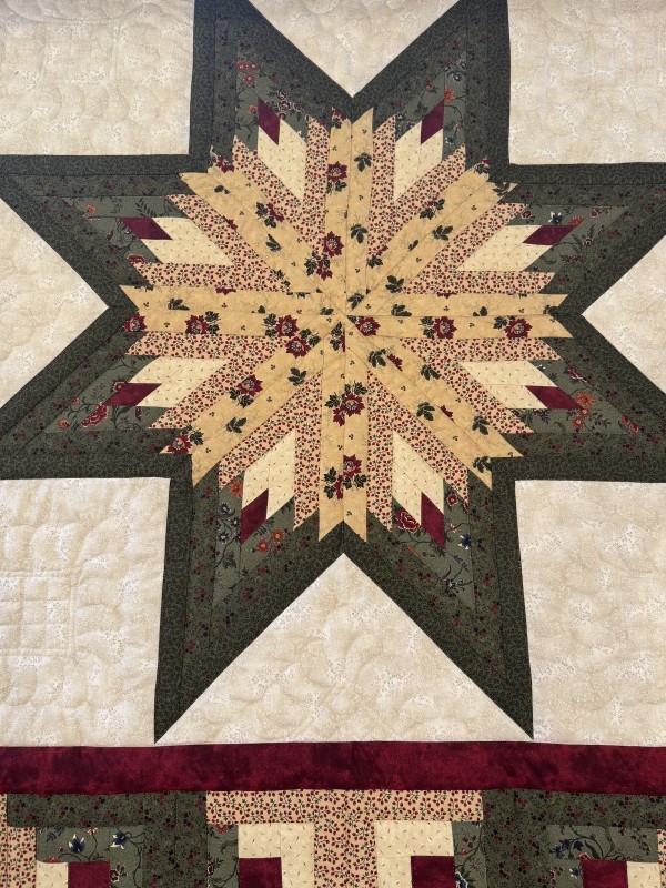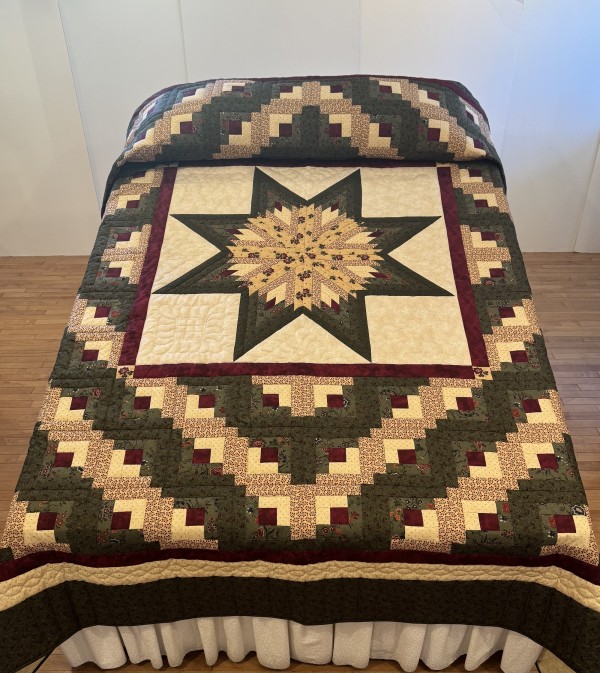 The Lone Star is a classic pattern that appeals to many buyers! This Lone Star pattern is combined with the classic Log Cabin block, creating a beautiful design! Hand-quilted by a friend, Lancaster County, PA.