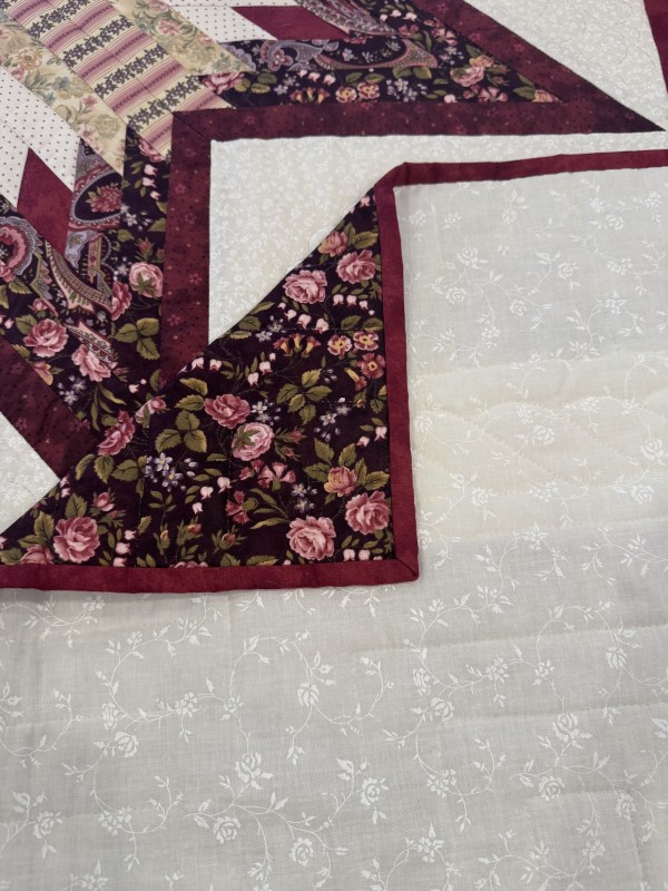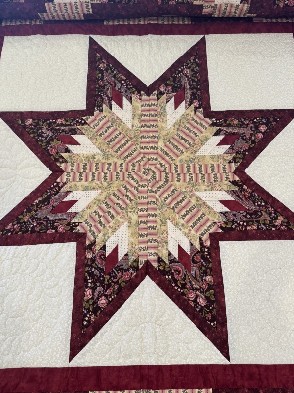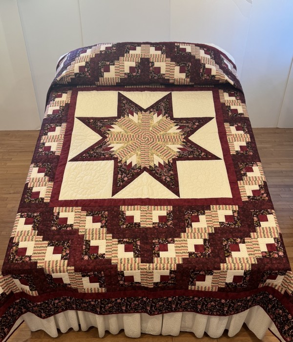 The Lone Star is a classic pattern that appeals to many buyers! This Lone Star pattern is combined with the classic Log Cabin block, creating a beautiful design! Hand-quilted by a friend, Lancaster County, PA.
